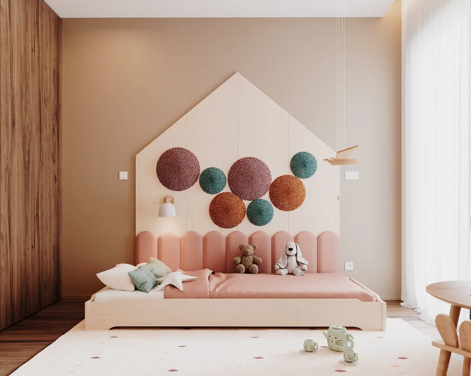 The Montessori Bedroom, was a special challenge embraced by CURO. The first step was to define the age range for which the room should meet the needs of the baby, who is starting to take her first steps. It was intended for the furniture to be simple and reusable.